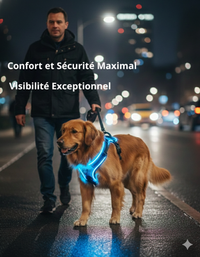 Un harnais lumineux rechargeable qui protège votre chien tout en lui assurant un confort optimal, même dans l’obscurité.